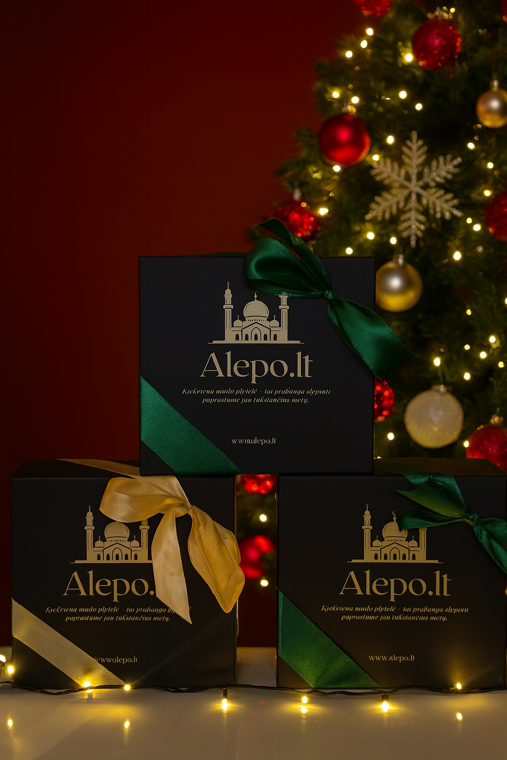 Unikali, naudinga ir nepamirštama dovana. 100% alyvuogių, 20% lauro Alepo muilas ir rankų darbo muilo padėkliukas iš alyvmedžio. Prabangi dovanų dėžutė. Rinkinių kiekis LABAI RIBOTAS.
